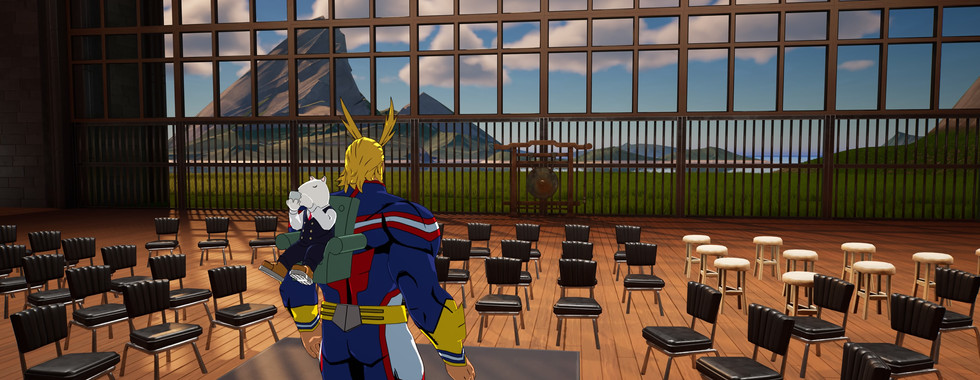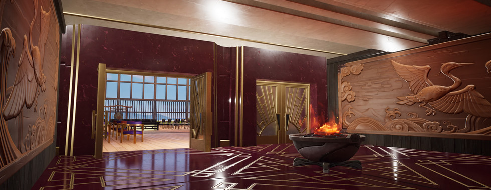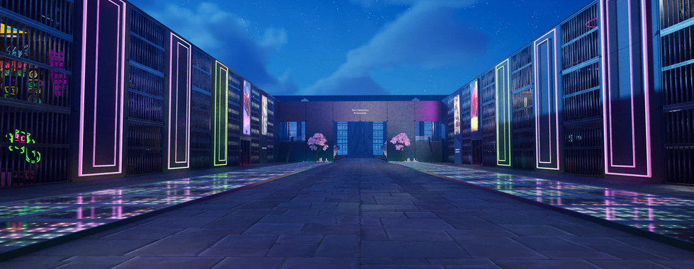 For the exterior design, I focused on a unified modern look for the front end of the complex. Since Fortnite doesn't have glass as a material, I used steel gates in all the places that would be glass in reality. While looking through the galleries & prefabs, I also discovered this incredibly gorgeous Japanese pack and decided have the largest concert space and garden carry this theme.