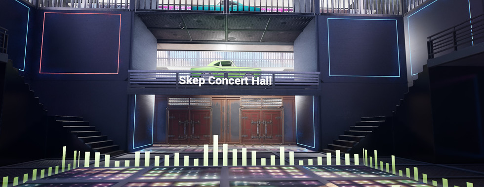 I designed Skep Hall in honor of one of my closest friends who's a violinist/rapper extraordinaire. He has a strong love of Hip-Hop culture, music production and cars, so I made him a Hip-Hop inspired black box theatre with 3 levels, line array speakers, the ultimate DJ/mic setup and cars hanging from the ceiling (...wouldn't advise that in real life, but hey! 😅).